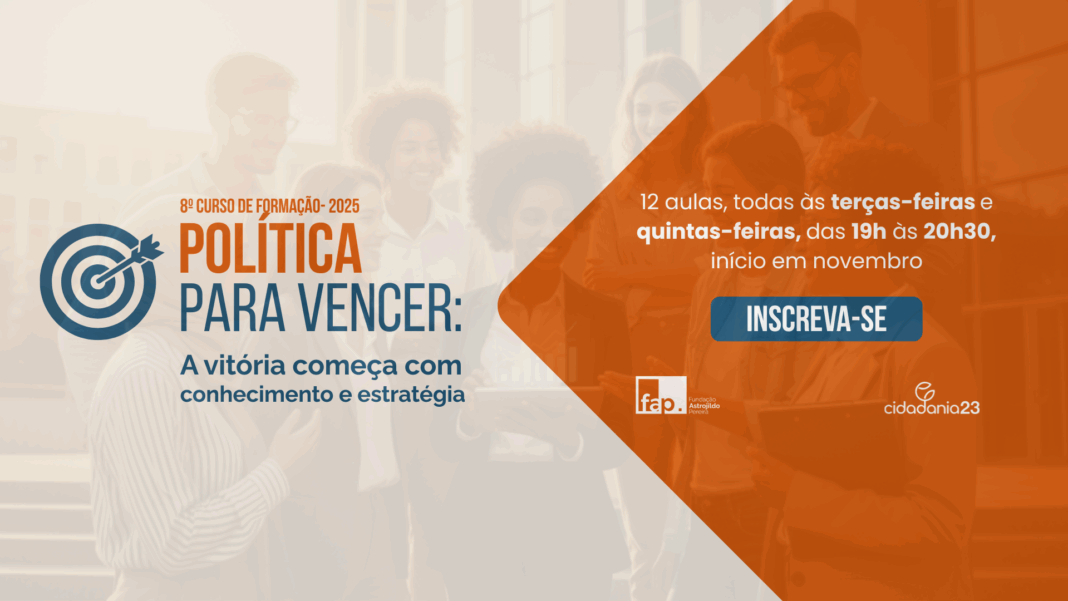 A Fundação Astrojildo Pereira (FAP), em parceria com o Cidadania 23, abriu as inscrições para o 8º Curso de Formação Política, a ser oferecido de forma online, com foco na qualificação de futuros candidatos e suas equipes para as eleições de 2026. Com o nome Política para vencer: A vitória começa com conhecimento e estratégia, a capacitação será de 4 de novembro a 11 de dezembro e terá 12 aulas telepresenciais, duas por semana, sempre às terças e quintas-feiras, das 19h às 20h30. Os interessados podem se inscrever no site da entidade, gratuitamente. Vagas limitadas.