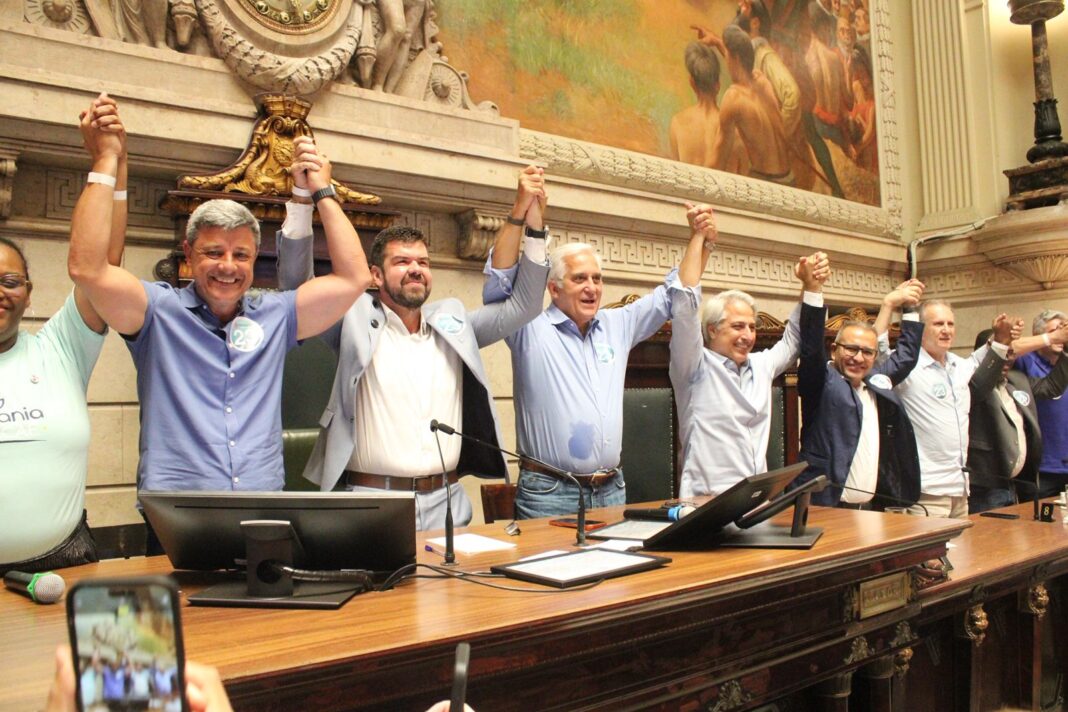 No plenário da Câmara, foi feita a abertura da solenidade que confirmou a recondução do prefeito de Macaé, Welberth Rezende, a presidência estadual do partido. A nova executiva, com mandato de quatro anos, terá a missão de montar as nominatas para a disputa de vagas na Alerj e na Câmara Federal em 2026.